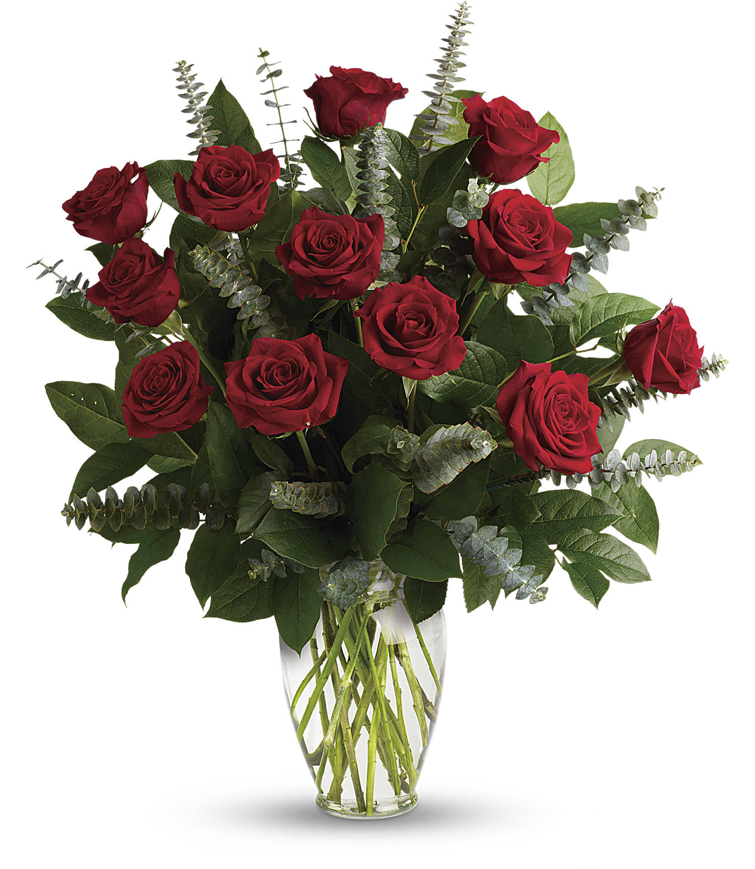 What's more romantic than a dozen red roses? Proclaim your love eternal with this radiant gift of crimson blooms and fresh greens, gathered in a classic keepsake vase.